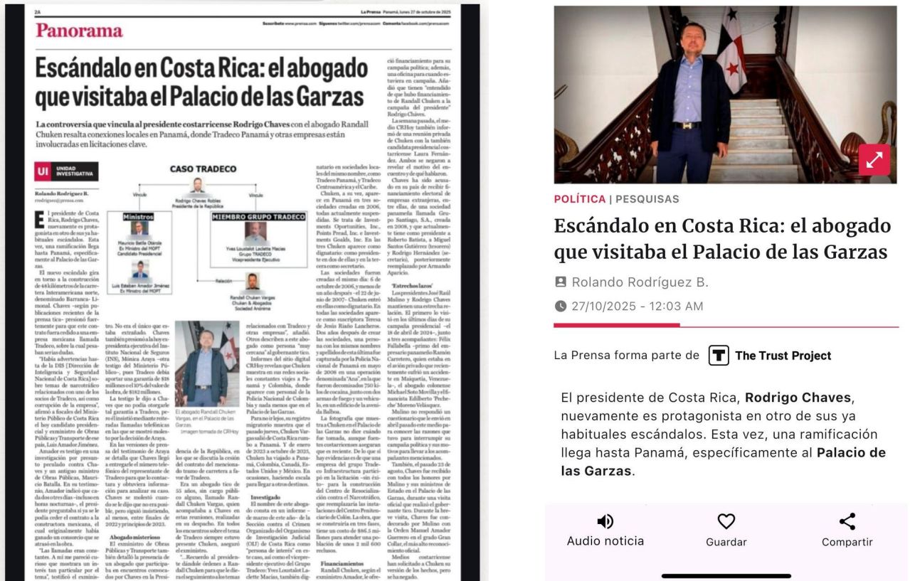 El prestigioso medio panameño reprodujo una investigación hecha por el medio digital CR Hoy y añadió información sobre las visitas que hizo Chuken a la Casa Presidencial de Panamá.