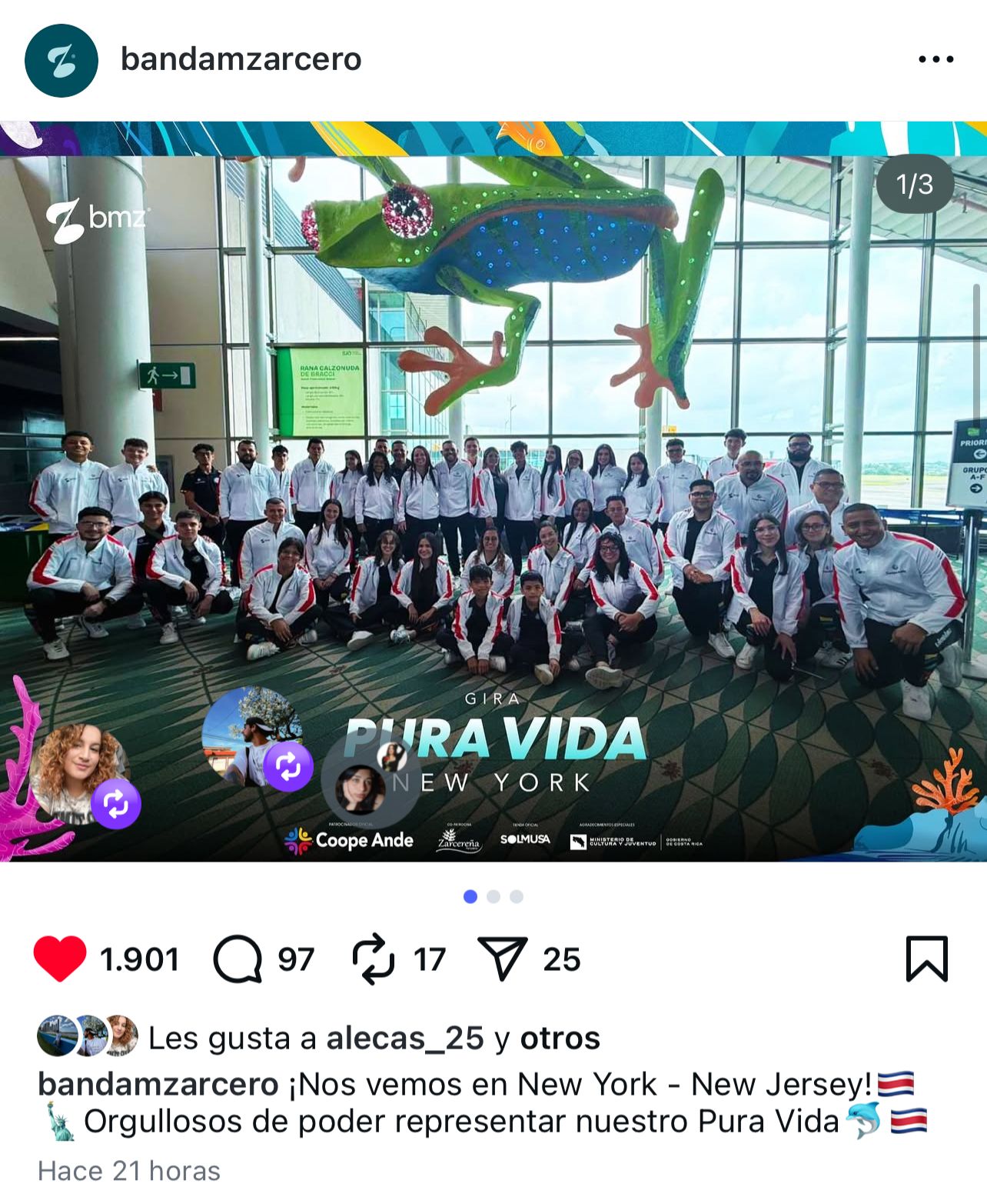 Por medio de sus redes sociales, la banda compartió fotografías de los grupos que viajaron hasta Estados Unidos, y sus integrantes han publicado imágenes sobre su llegada, destacando la alegría y felicidad que les genera poner en alto el nombre de Costa Rica.
