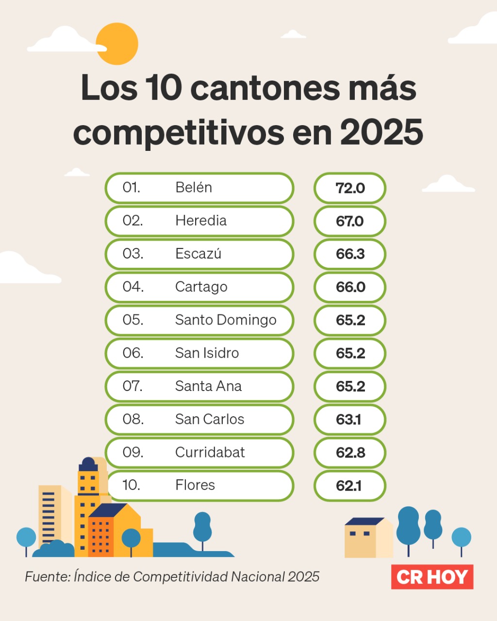 Belén es el cantón más destacado del país: Esta es la lista de los mejores y peores en competitividad