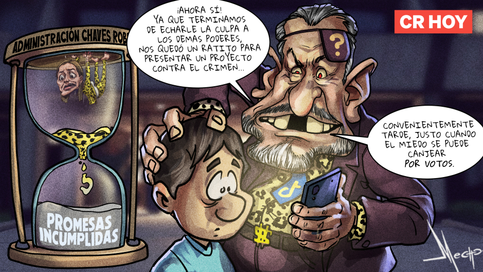 Caricatura del DíaGobierno anuncia que presentará proyecto para combatir crimen organizado, a pocos días de las eleccionesPor Mecho | 27 de Ene. 2026 | 6:12 amcaricatura@crhoy.comCompartir Comentarios1 comentarioHPPor Humberto PachecoHace alrededor de 9 horasComo dice el sabio dicho popular: tarde piaste!
