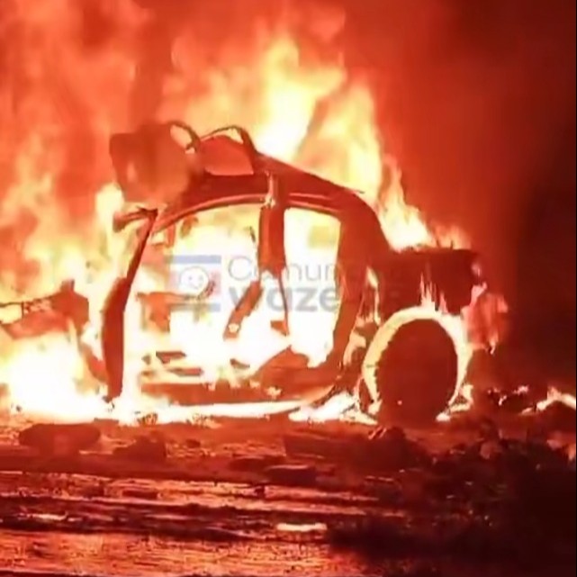 Carro alza en llamas tras chocar contra poste: dos heridos trasladados al hospital