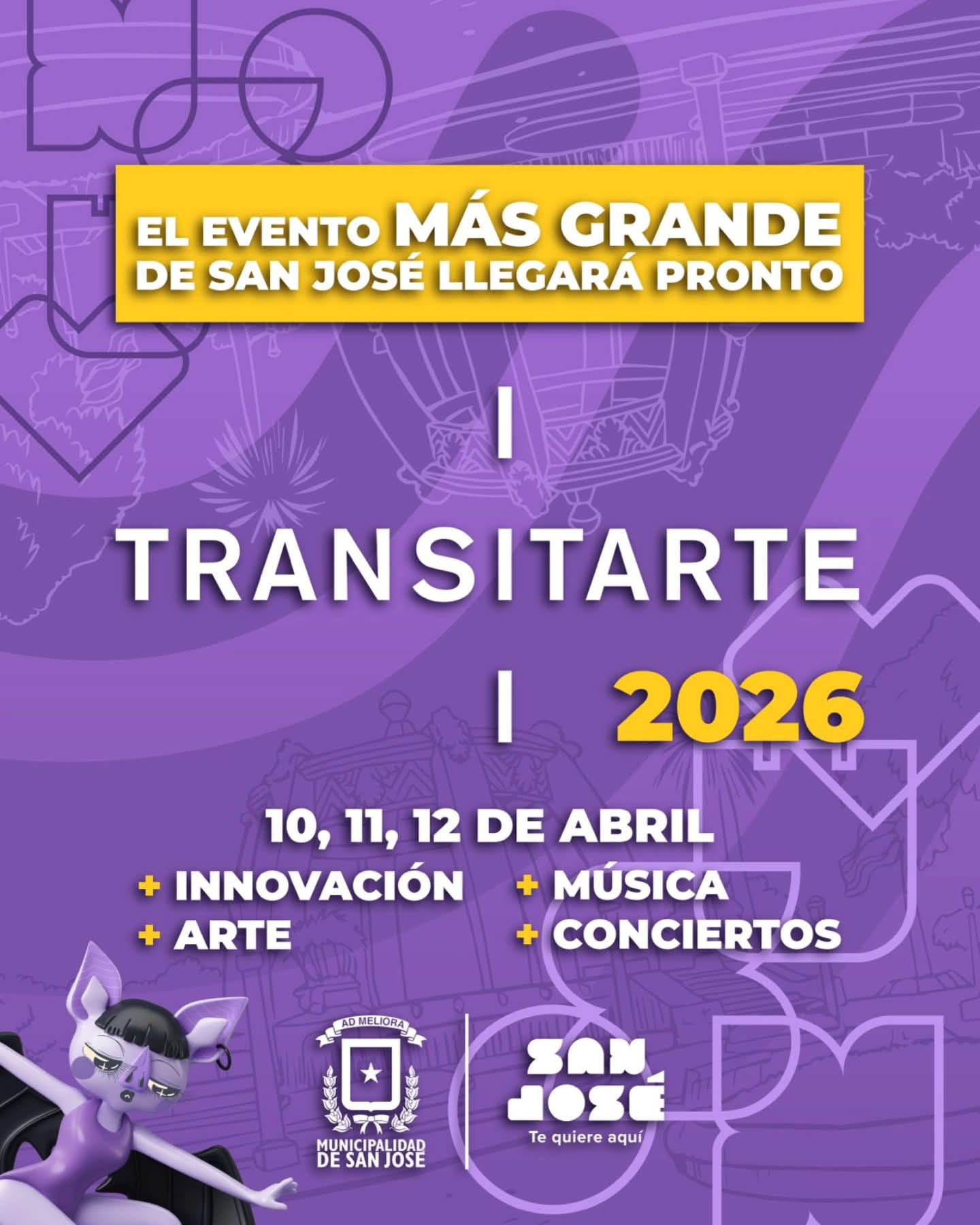 La Municipalidad de San José indicó que Transitarte 2026 se realizará los días 10, 11 y 12 de abril, y promete traer innovación, arte, música y conciertos para el disfrute del público.