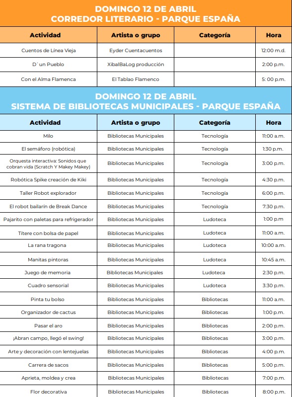 Las actividades en esta sección se realizarán desde las 11:00 a. m. hasta las 7:20 p. m.
