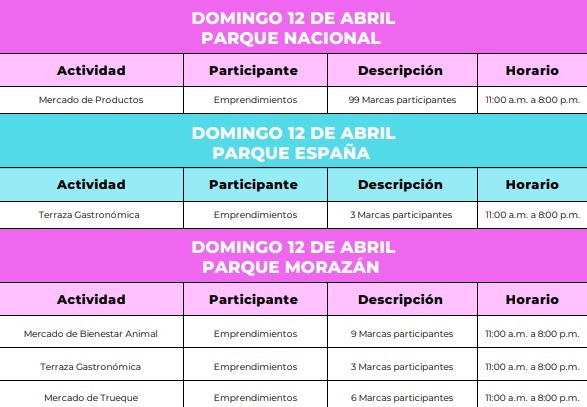 Este domingo, en los distintos parques de San José, se ofrecerán espacios para recorrer, probar y descubrir propuestas únicas de emprendedores que presentan sus productos y proyectos.