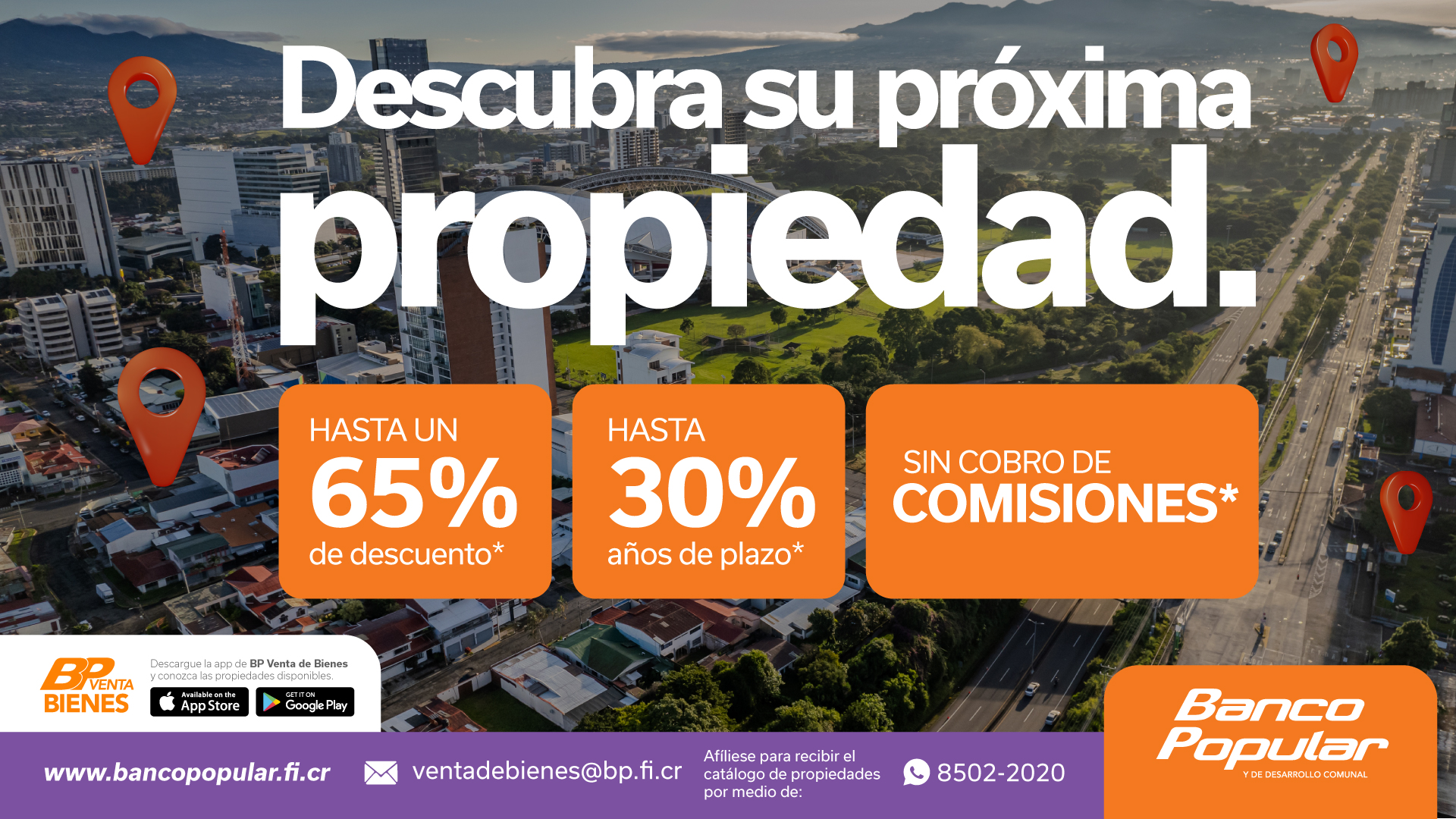 Como parte de la estrategia de acercamiento, BP Venta de Bienes también dispone de herramientas digitales que facilitan la búsqueda de propiedades. Las personas usuarias pueden descargar la aplicación oficial desde App Store y Google Play o solicitar el catálogo mensual vía WhatsApp al número 8502-2020.