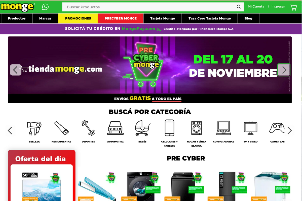 Para este Pre Cyber Monge hay rebajas en todas las categorías: tecnología, electrodomésticos, línea blanca, muebles, colchones, celulares, gaming y mucho más.