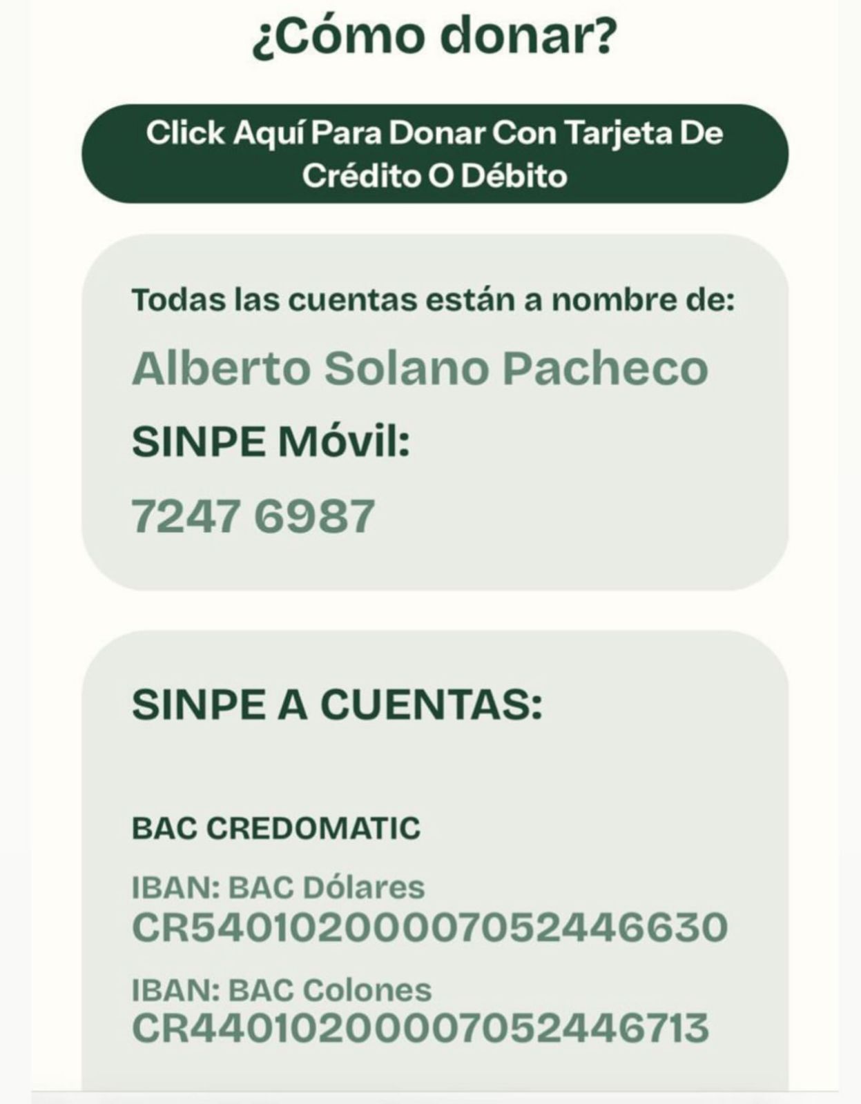 Además, la pareja compartió los números de cuenta de Solano para que las personas tengan varias opciones para donar en favor de su salud. Estas son sus cuentas tanto en dólares como en colones.