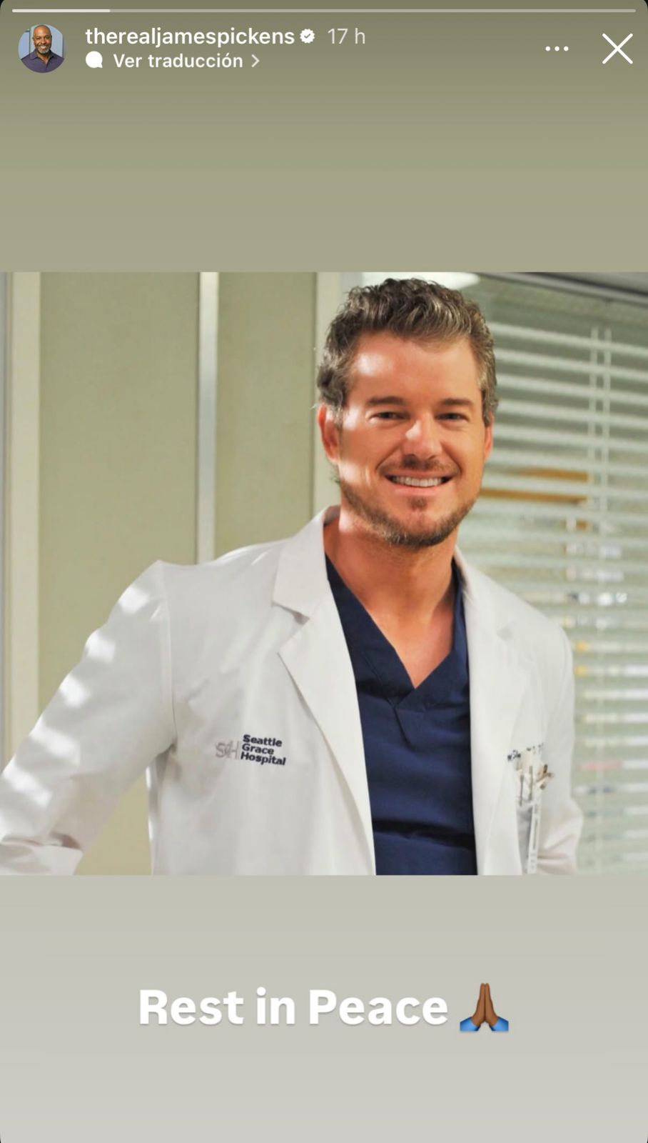 El doctor Richard Webber en la serie, interpretado por James Pickens Jr., también compartió en sus redes sociales una imagen del actor con el mensaje: "Que descanse en paz".