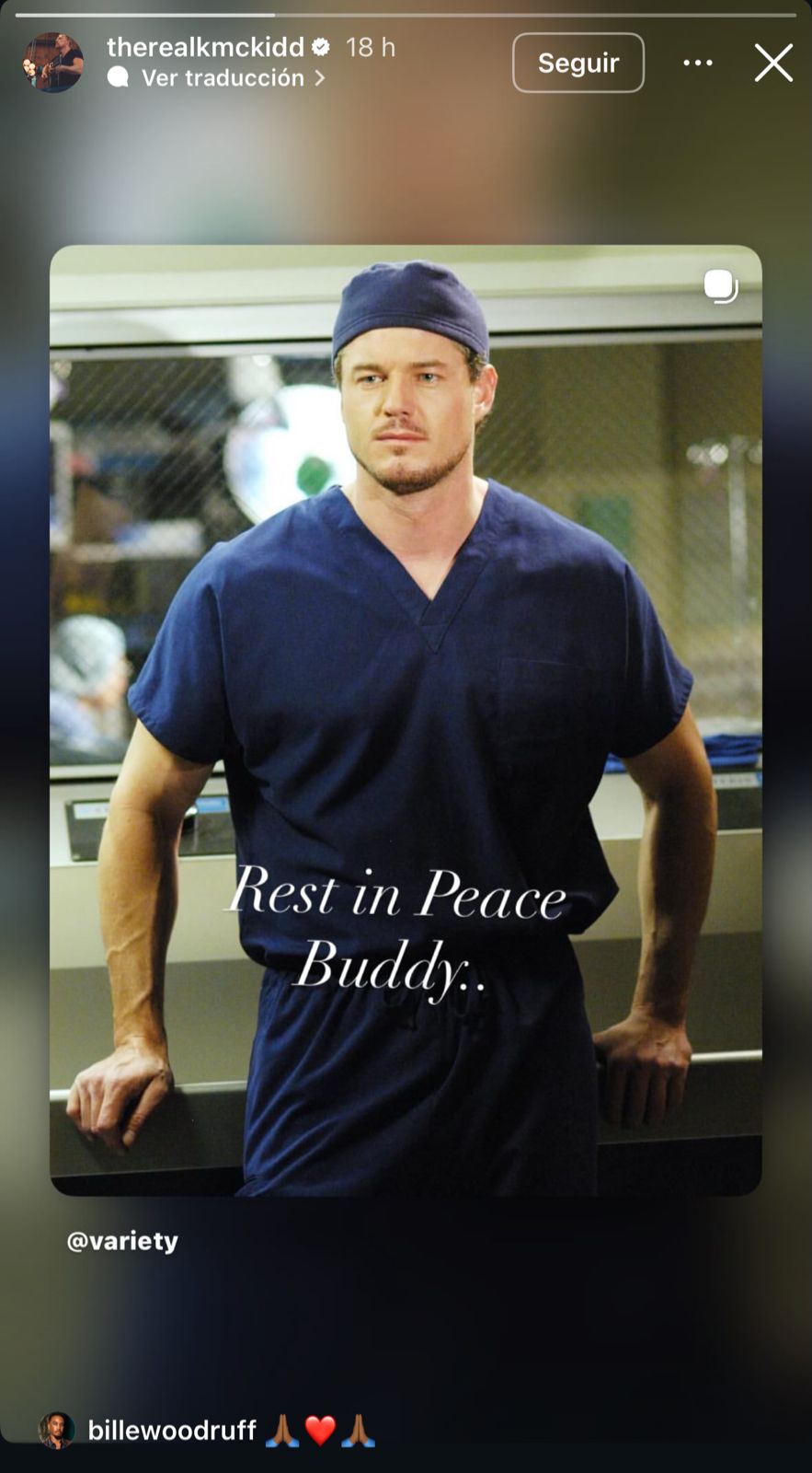Kevin McKidd, quien interpretó al doctor Owen Hunt, también publicó un mensaje breve pero significativo: "Descansa en paz, amigo".