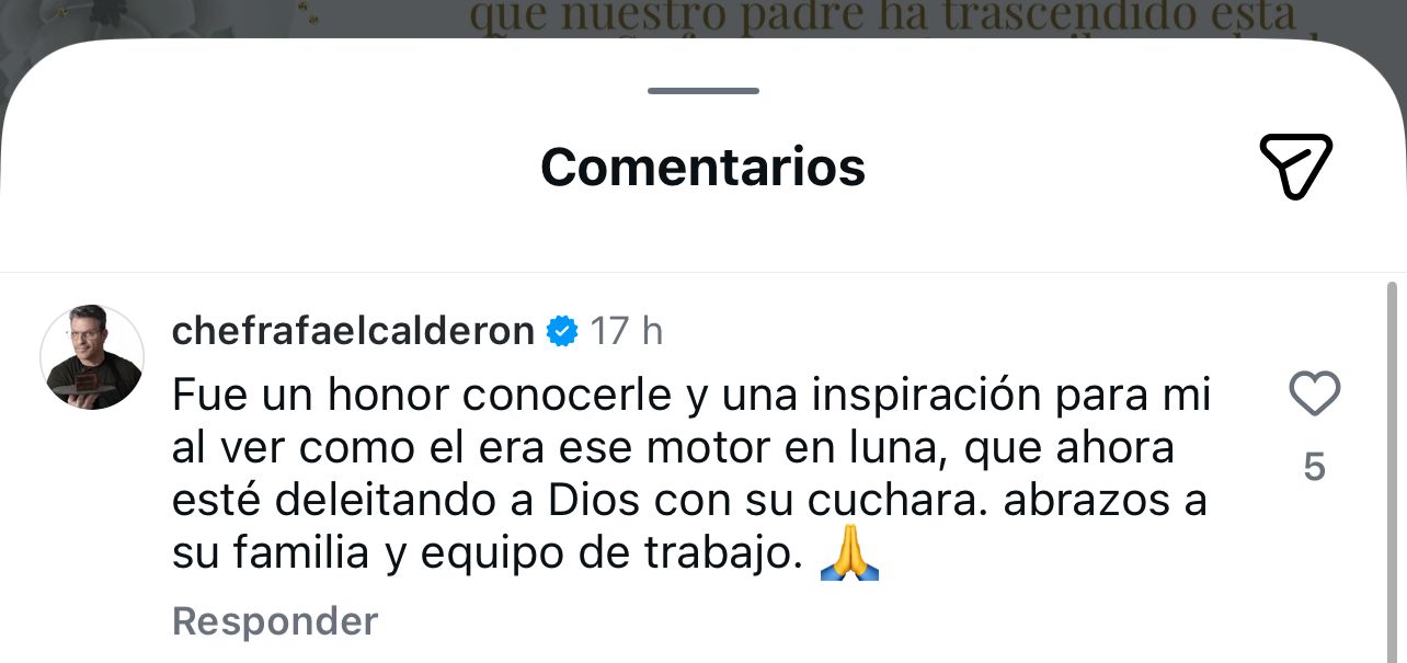 Por su parte, la chef Doris Goldgewicht también brindó un emotivo mensaje en el que confesó tener lágrimas en los ojos tras la partida de su amigo. Aseguró que siempre lo recordará dando clases, ya que compartía constantemente sus conocimientos.