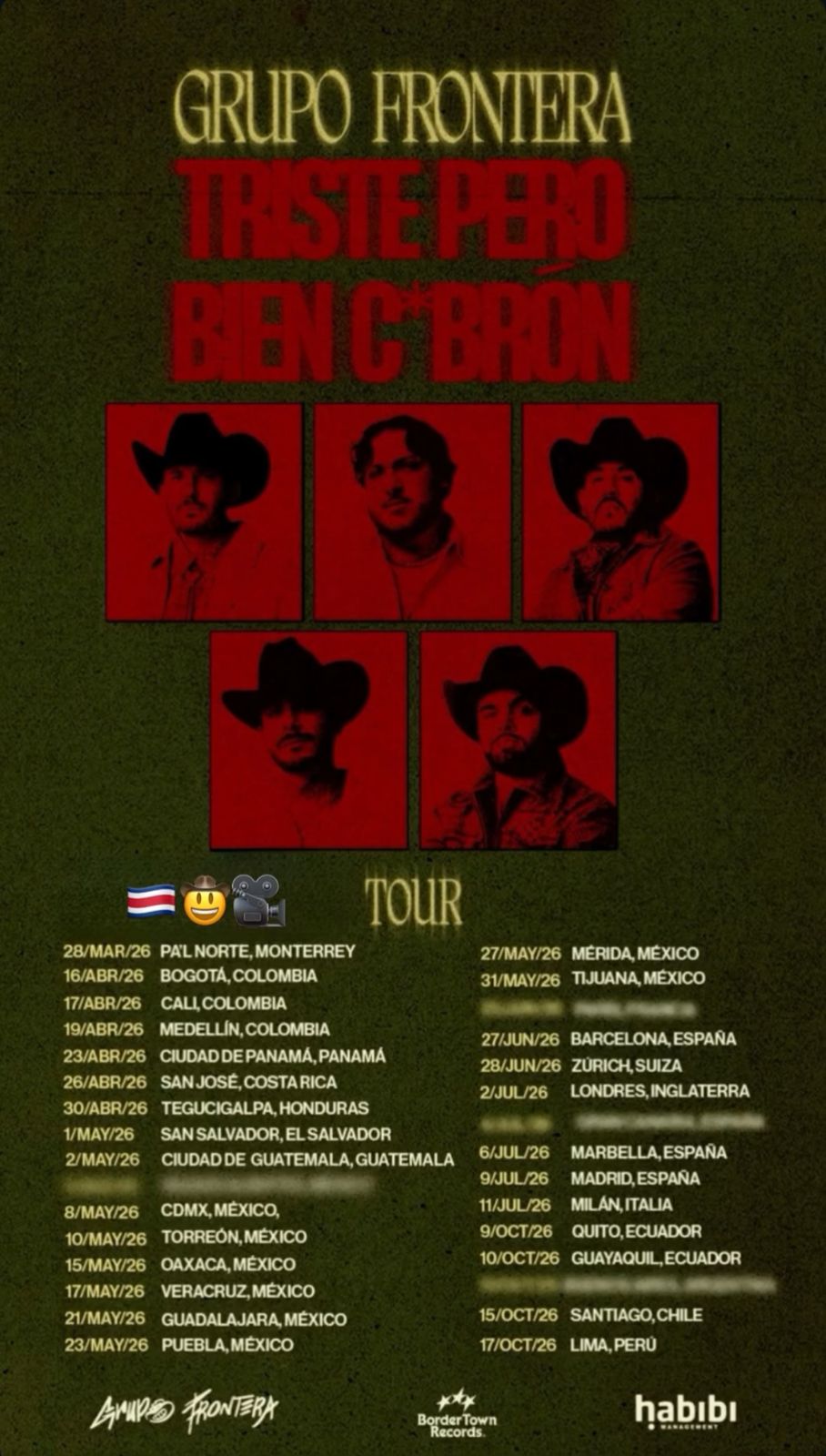 La agrupación Grupo Frontera incluyó a Costa Rica en su tour "Triste pero bien cbrón"*, con el que volverá a deleitar al público costarricense.