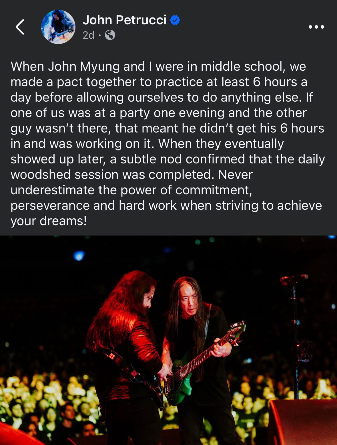 Con estas experiencias, se confirma lo que Petrucci afirmó en su reciente publicación y donde expuso que nunca se puede subestimar el poder del compromiso, la perseverancia y el trabajo duro cuando se trata de alcanzar los sueños.
