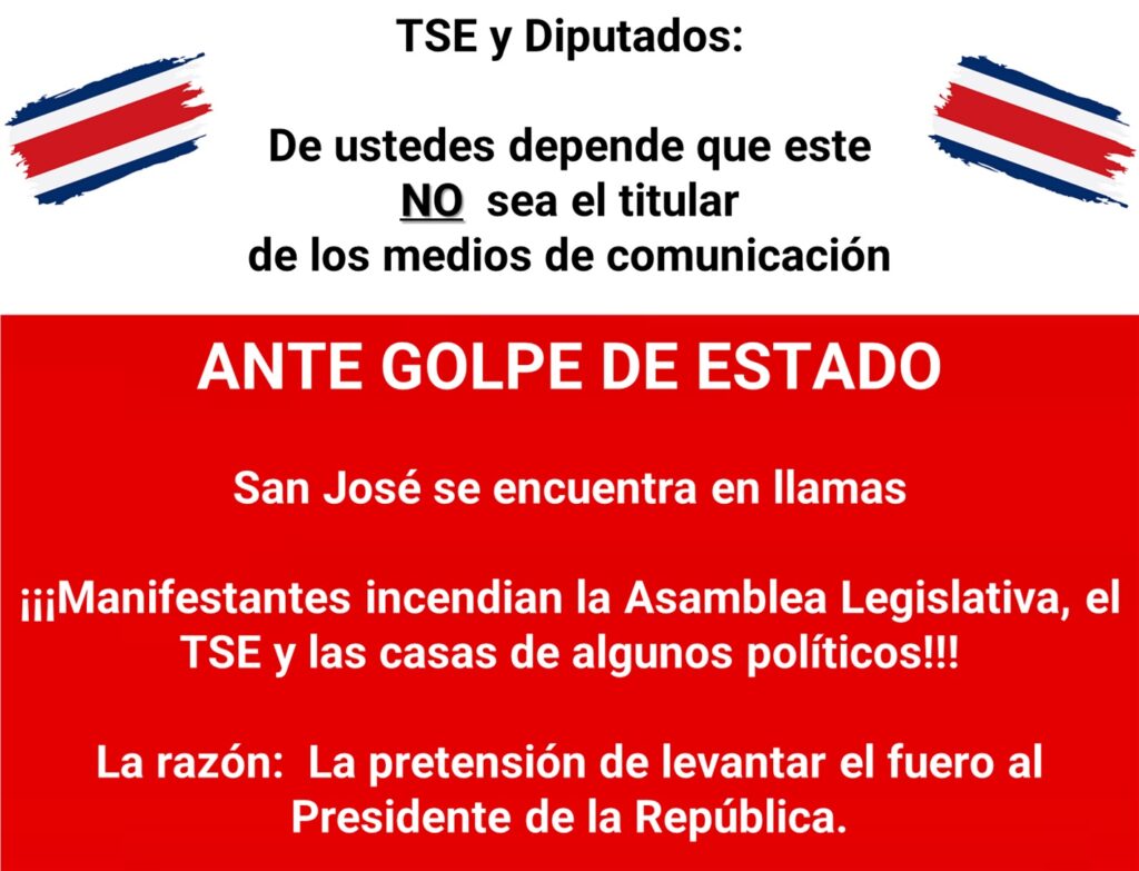 "TSE y Diputados: De ustedes depende que NO sea el titular de los medios de comunicación. ANTE GOLPE DE ESTADO".