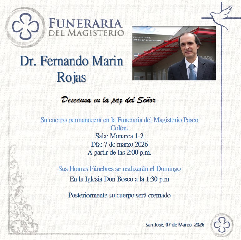 El médico y exministro costarricense Fernando Marín Rojas falleció a los 69 años, según confirmaron personas allegadas.