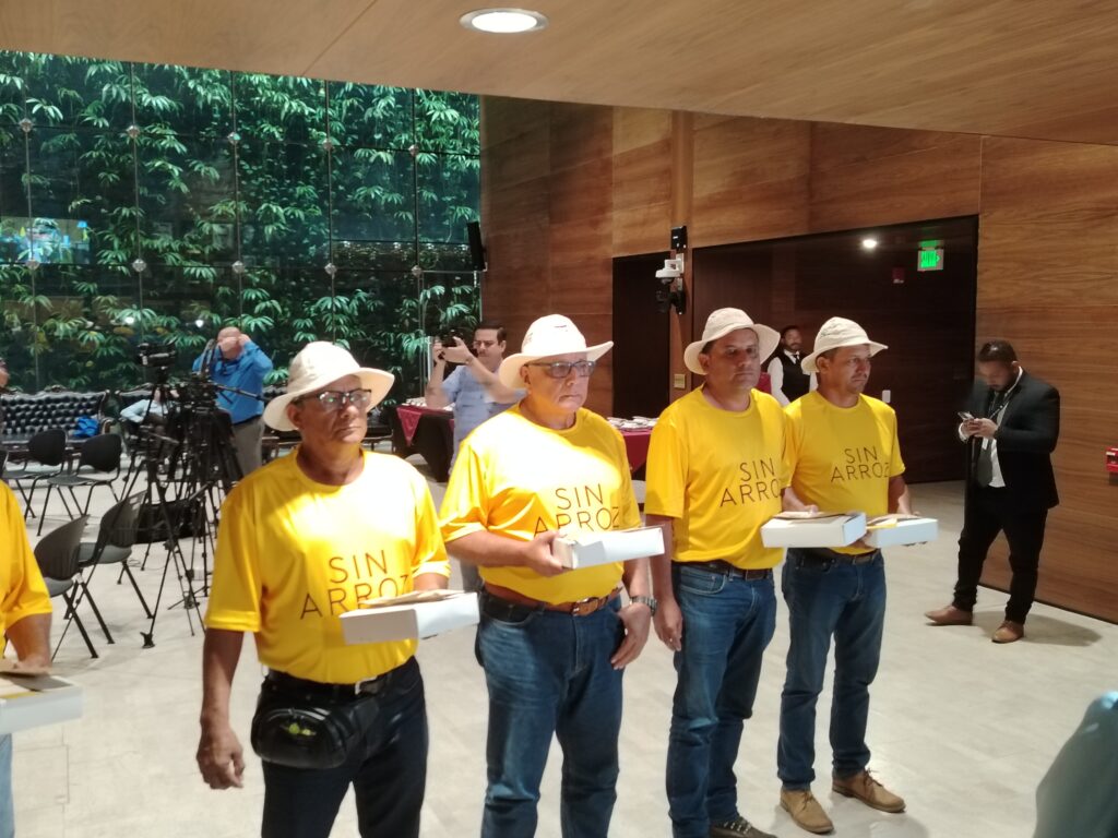 Incluso, el sector arrocero se ha hecho presente en la barra del público del Congreso portando carteles con críticas a los diputados oficialistas y las políticas del Gobierno para el sector.