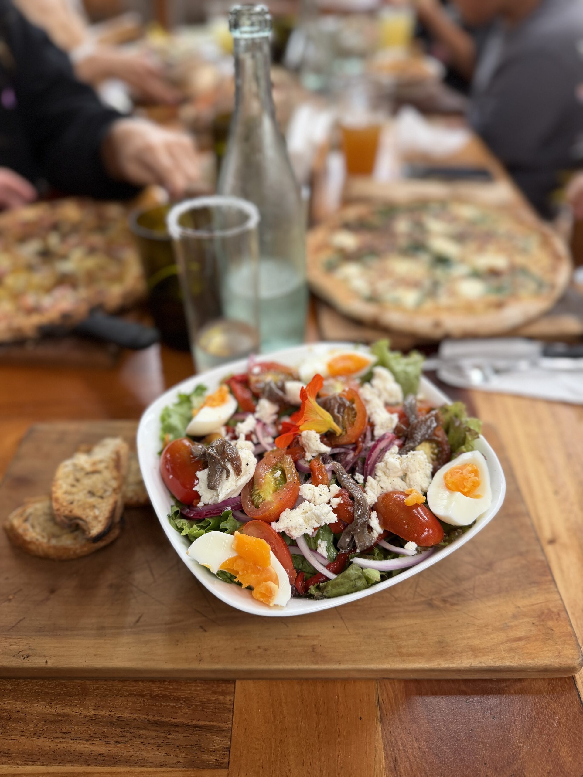 La pizzería con horno de leña ya estaba clara, pero el enfoque debía ir más allá de la cocina. Riverside se concibió bajo tres ejes: sostenibilidad ambiental, compromiso social y relación directa con la comunidad. Desde sus inicios, el proyecto ha trabajado con personas de la zona, ofreciendo oportunidades de aprendizaje y crecimiento profesional, y apoyando causas locales como organizaciones de bienestar animal y el hogar de ancianos de San Josécito.