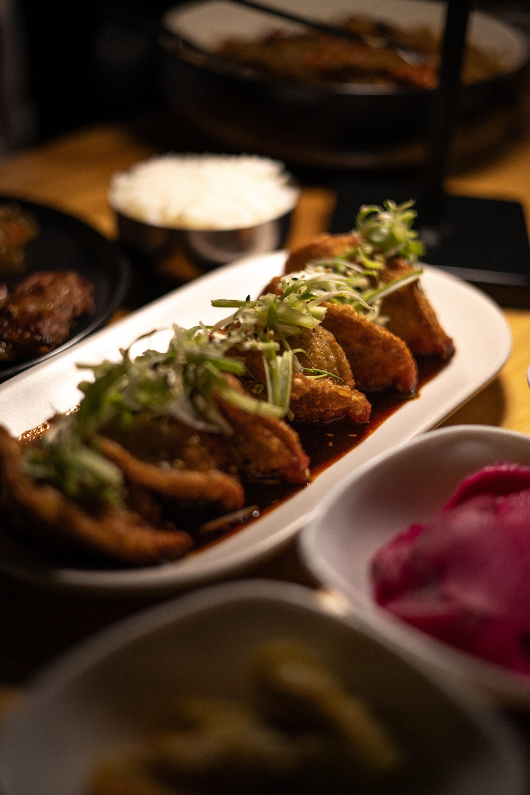 El barbecue coreano convierte la comida en un acto colectivo. La parrilla al centro hace que todos participen: se cocina, se corta, se comparte. El sonido de la carne al tocar el carbón caliente, el humo que sube lentamente y el ritmo pausado de la conversación construyen una experiencia que va más allá del plato.