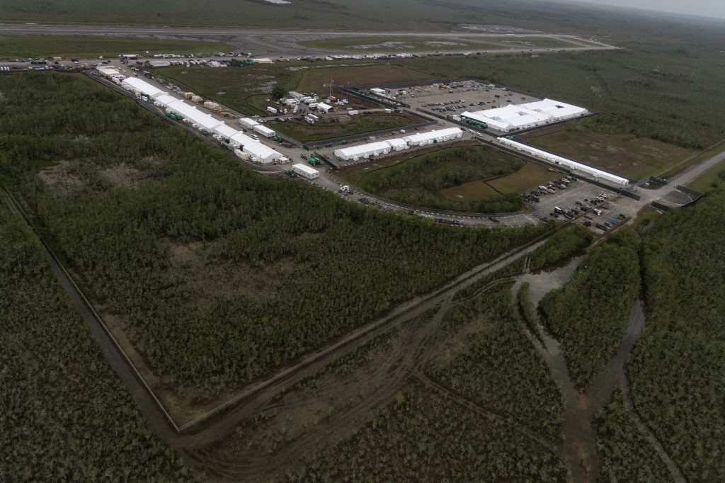 El centro nació tras una declaración de emergencia migratoria firmada por DeSantis en junio. Gracias a esta medida, el gobierno estatal tomó control del antiguo aeropuerto Dade-Collier, ubicado dentro de la Reserva Nacional Big Cypress, y comenzó las obras sin necesidad de estudios ambientales ni licitaciones públicas.