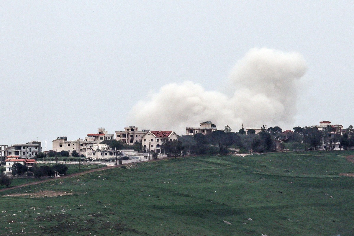 Una fotografía tomada desde el lado israelí de la frontera con Líbano muestra una columna de humo que se eleva desde el sur del Líbano el 15 de abril de 2026. AFP