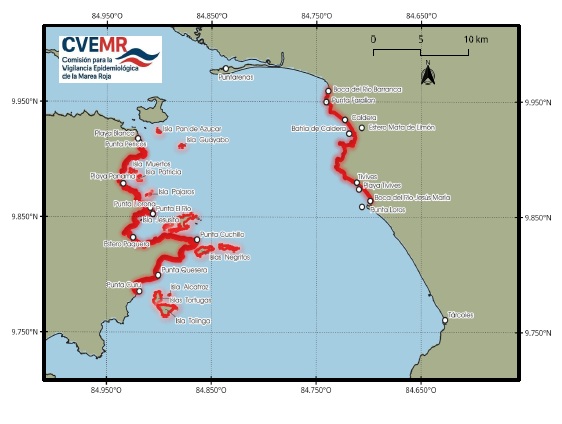 El Servicio Nacional de Salud Animal (Senasa) advirtió que la marea roja tóxica se extendió hasta la zona de Bahía Caldera, en Puntarenas, por lo que amplió la prohibición para la extracción y comercialización de moluscos bivalvos.