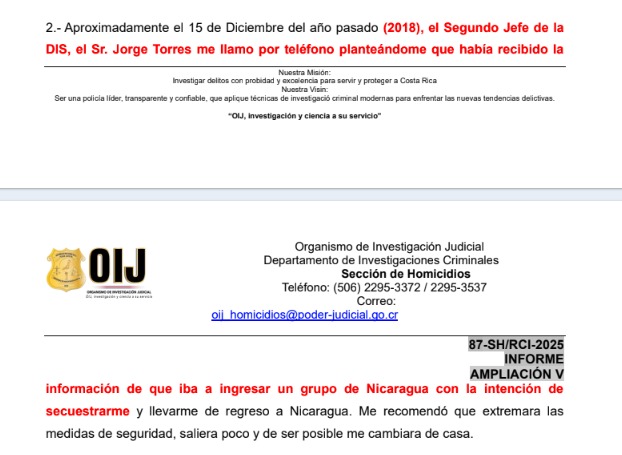 La carta del nicaragüense se incorporó en el informe elaborado por el Departamento de Investigaciones Criminales y la Sección de Homicidios del Organismo de Investigación Judicial (OIJ), tras el homicidio ocurrido el 19 de junio de 2025.