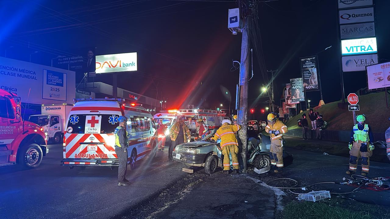 Este miércoles a eso de las 4:30 a.m. los cuerpos de emergencia recibieron la información de un fuerte accidente de tránsito ocurrido frente al centro comercial del Prado en Curridabat.