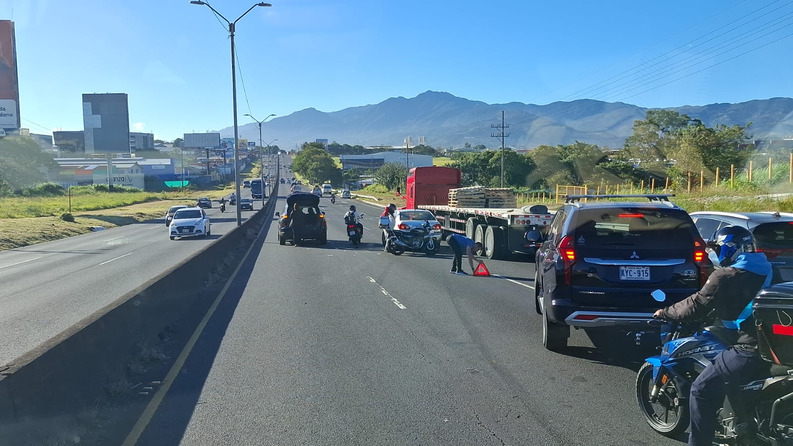 Este jueves por la mañana se dio un accidente de tránsito por el cual dos carriles del sentido Alajuela – San José se mantienen cerrados a la altura de la Firestone.