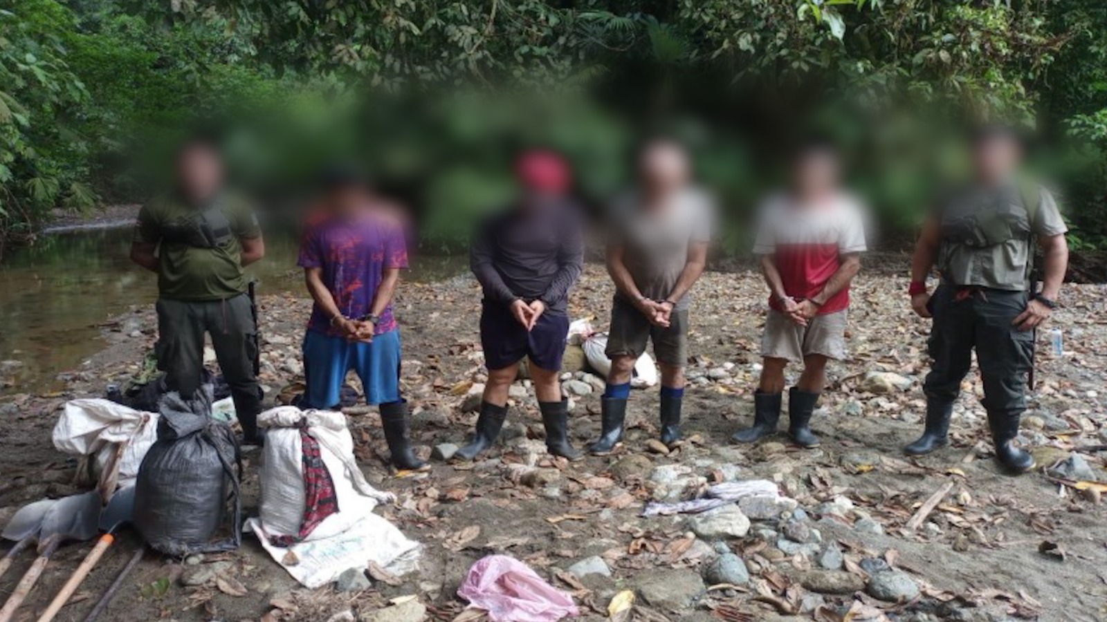 El punto intervenido evidenciaba minería ilegal activa y cambio de uso de suelo en un área protegida. Los detenidos fueron informados de sus derechos y trasladados bajo custodia al centro operativo, para quedar a la orden de la Fiscalía.