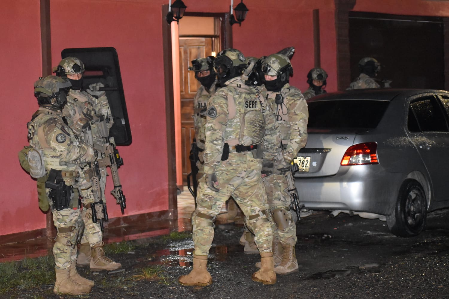 Desde las 4:00 a.m., con apoyo del Servicio Especial de Respuesta Táctica (SERT) y la Unidad Especial de Apoyo de Presidencia, las autoridades judiciales trabajan en la detención de: Marshall Alexander Kooper; Yurbel Juseph Myers Ortega, alias "Yuyito"; Jo-nayquel Diomar Moraga Elizondo; Marshall Kooper Lopez; Mayclan de la O Salazar; Keyral Orlando Walker Solano; Yurgen Fabricio Flores Espinoza; y Jousseth Zarith Olivas Lopez, alias "Jou".
