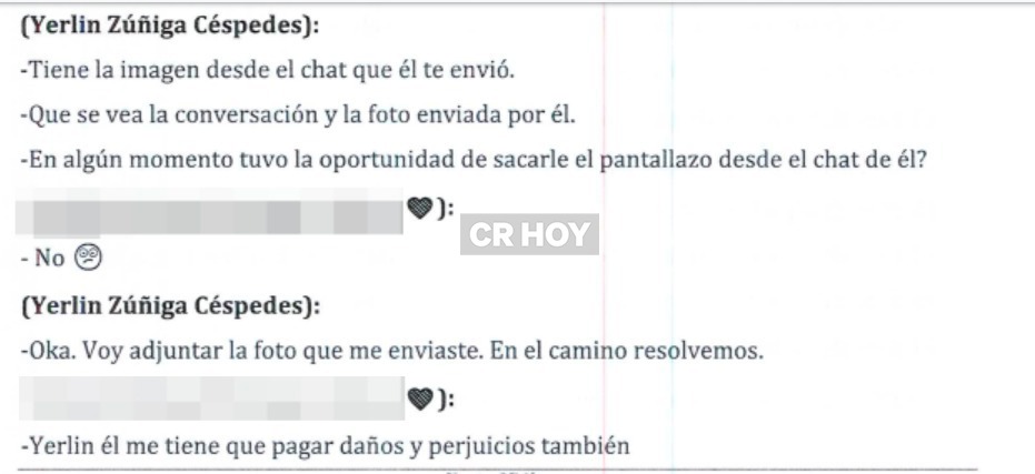 El expediente expone explícitamente los hechos, sin embargo, por respeto a la víctima CR Hoy no los publica. Posteriormente, la mujer y Zúñiga intercambian mensajes de índole personal que no son objeto de la investigación.