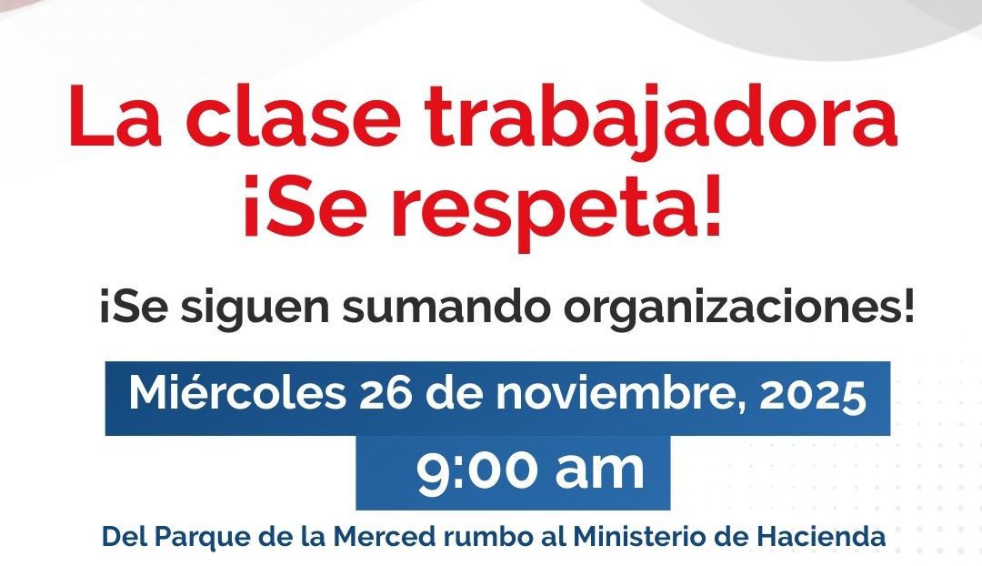 Según señalaron, la manifestación se llevará a cabo el miércoles 26 de noviembre, a partir de las 9:00 a. m., y la ruta será desde el Parque de la Merced, en San José, rumbo al Ministerio de Hacienda.