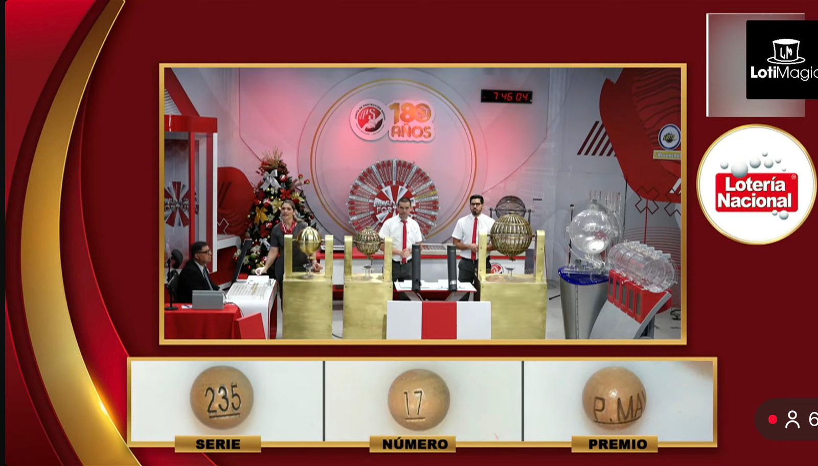 - Premio mayor: número 17 con la serie 235 para un premio de ₡150 millones por emisión.