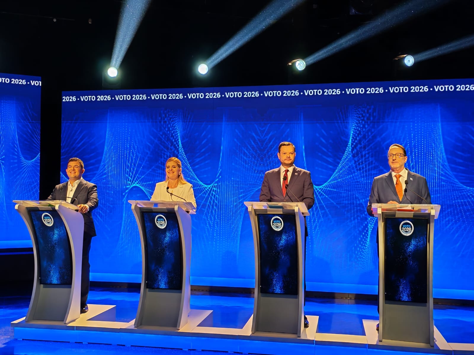 Aspirantes presidenciales en el debate de Noticias Repretel, el cual se realizó el 28 de enero de 2026. CRH