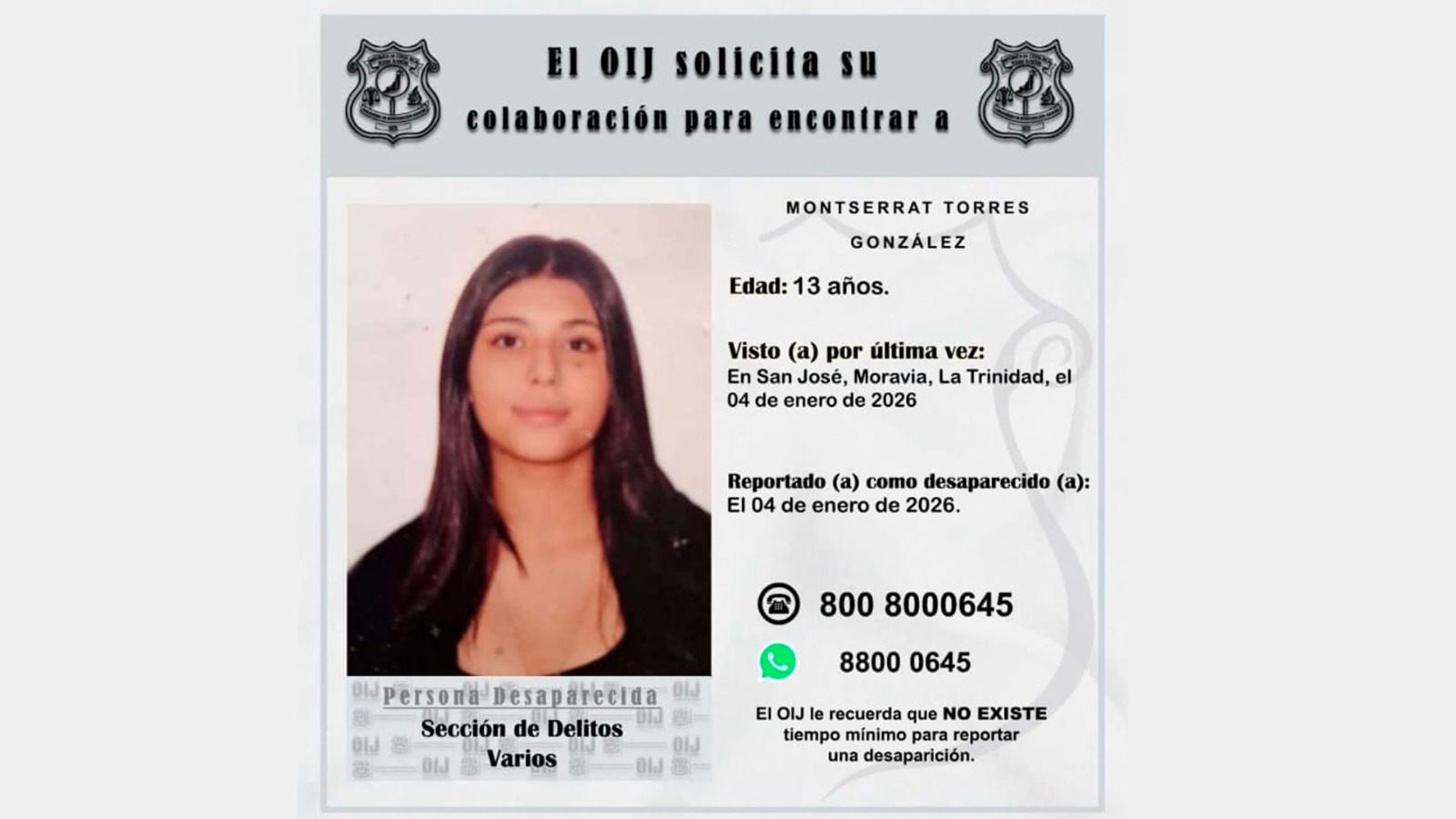 De acuerdo con información del Organismo de Investigación Judicial (OIJ), la menor fue vista por última vez en San José, Moravia, distrito de La Trinidad, ese mismo día.
