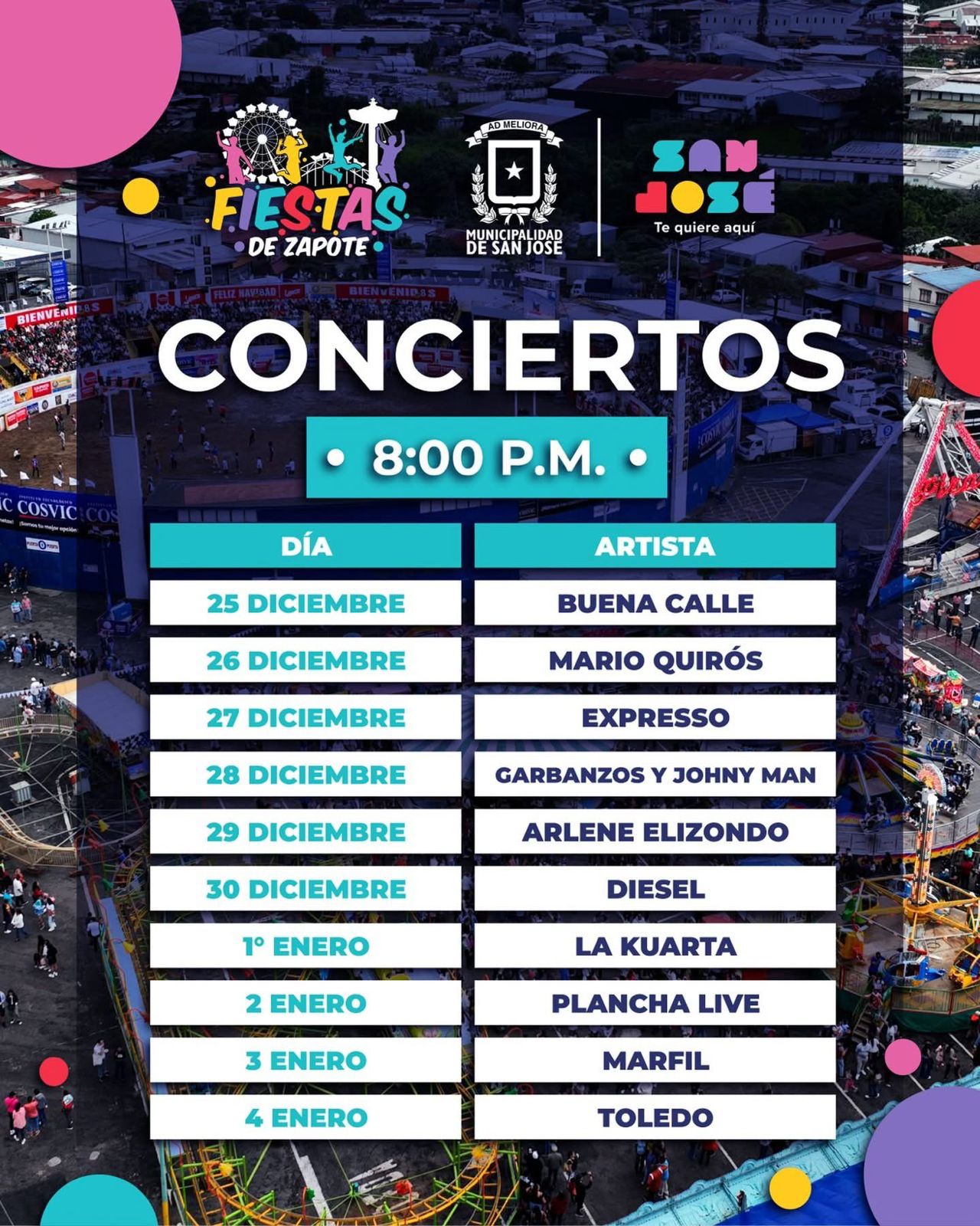 Para los últimos días de celebración, la municipalidad de San José anunció la siguiente programación musical: