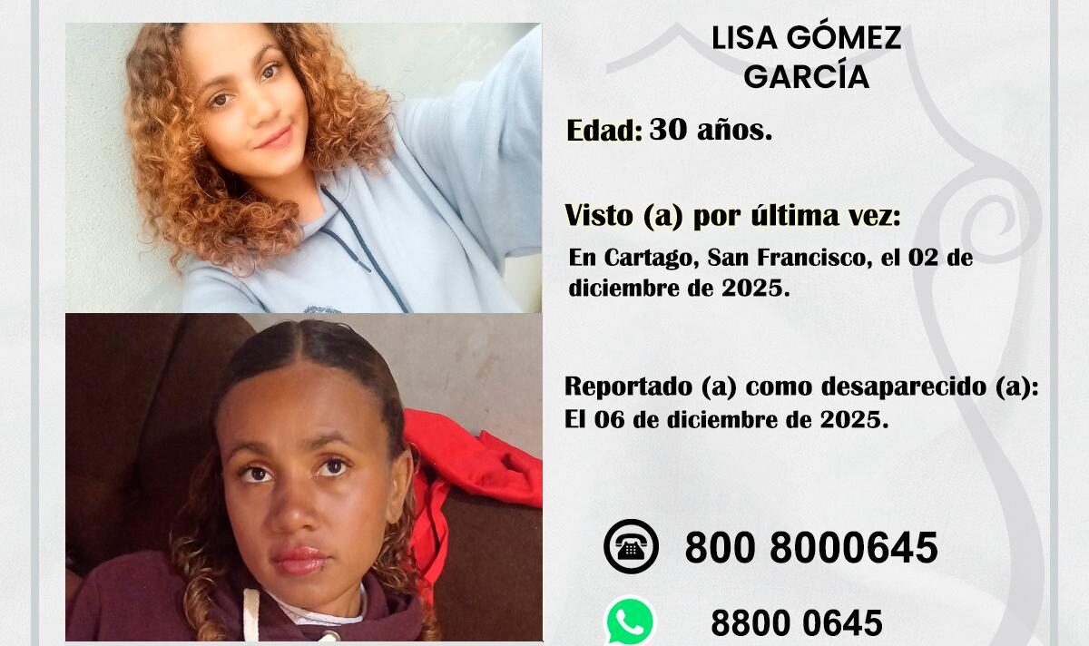 La mujer fue vista por última vez el pasado martes 2 de setiembre en el sector de San Francisco, en Cartago.