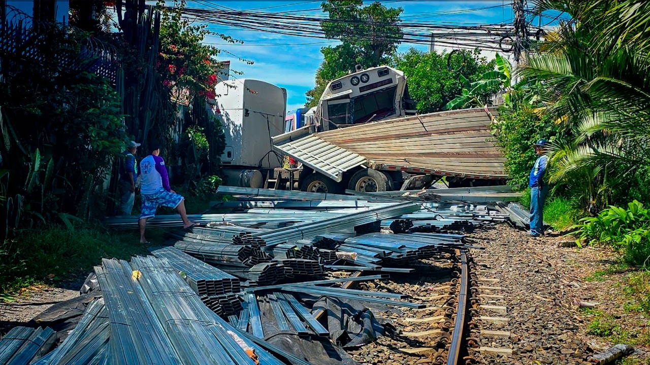El incidente se registró alrededor de las 9:18 a.m., específicamente frente al supermercado Walmart en Cinco Esquinas de Tibás, donde el tren colisionó contra un tráiler y un poste de tendido eléctrico.