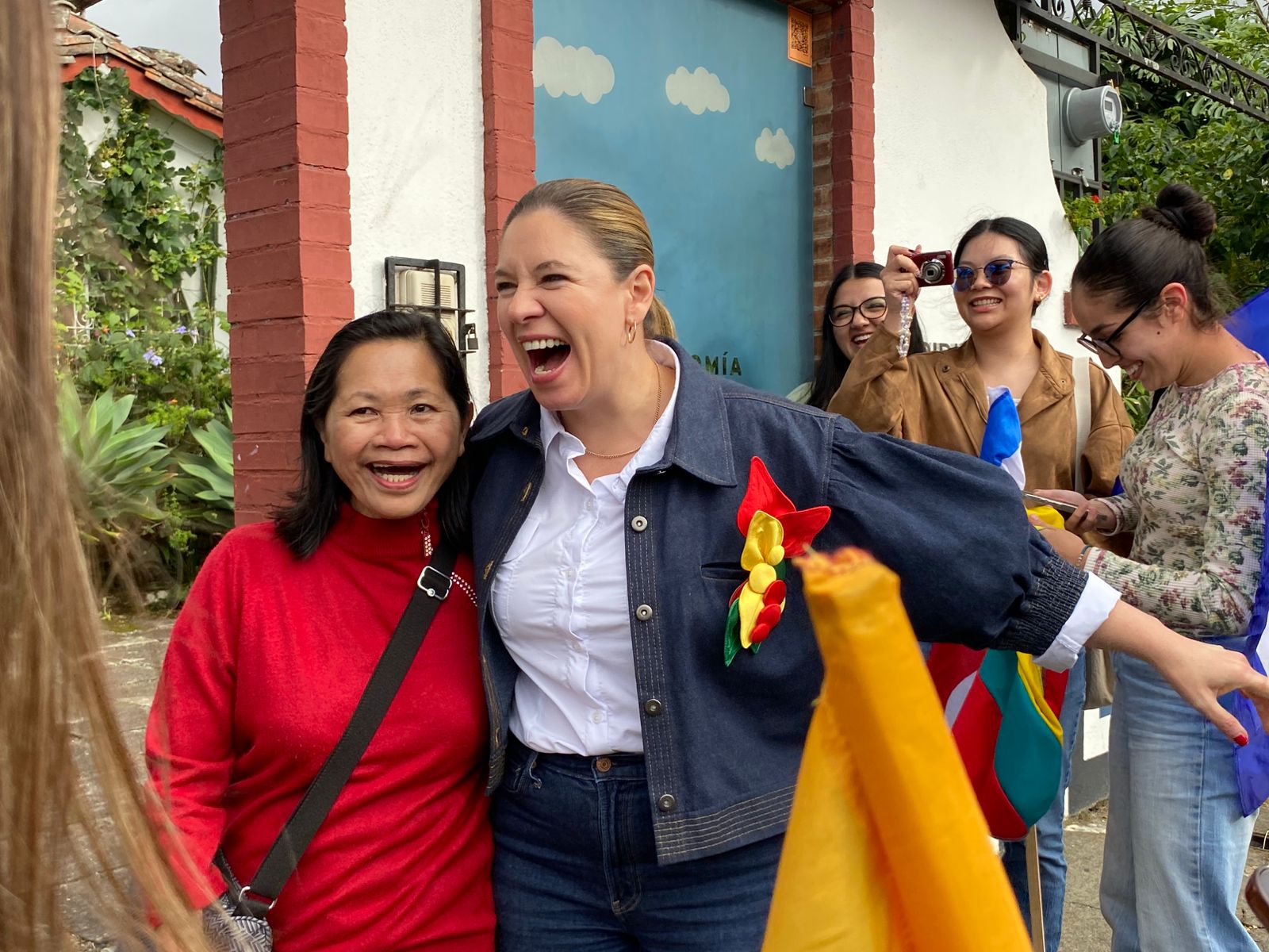 2:33 p.m. Claudia Dobles hizo pausa en la agenda del día electoral para compartir con allegados.
