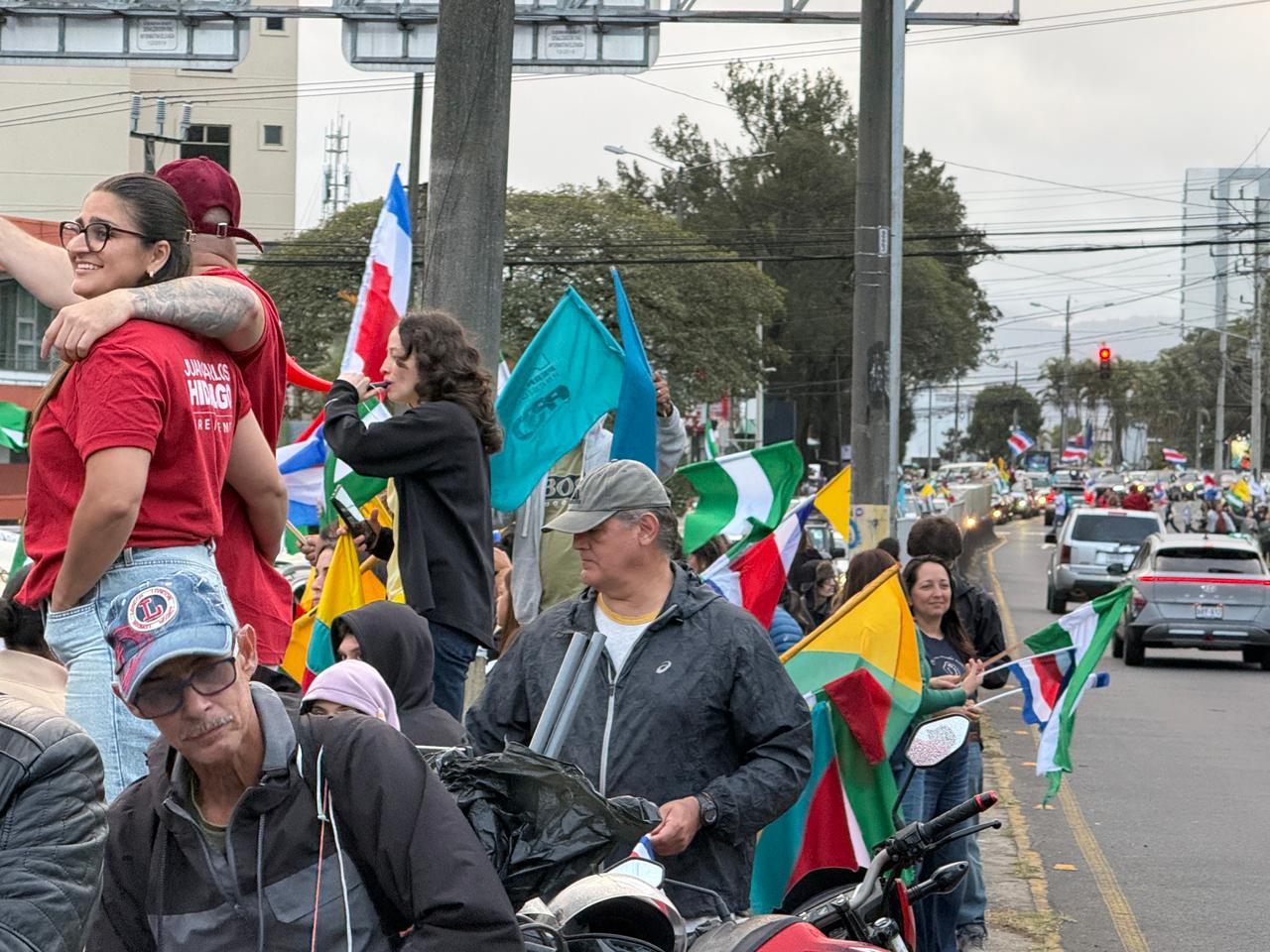 5:30 p.m. Simpatizantes multipartidistas tomaron la rotonda de La Hispanidad, en San Pedro de Montes de Oca, en celebración de la fiesta patria por las elecciones nacionales.