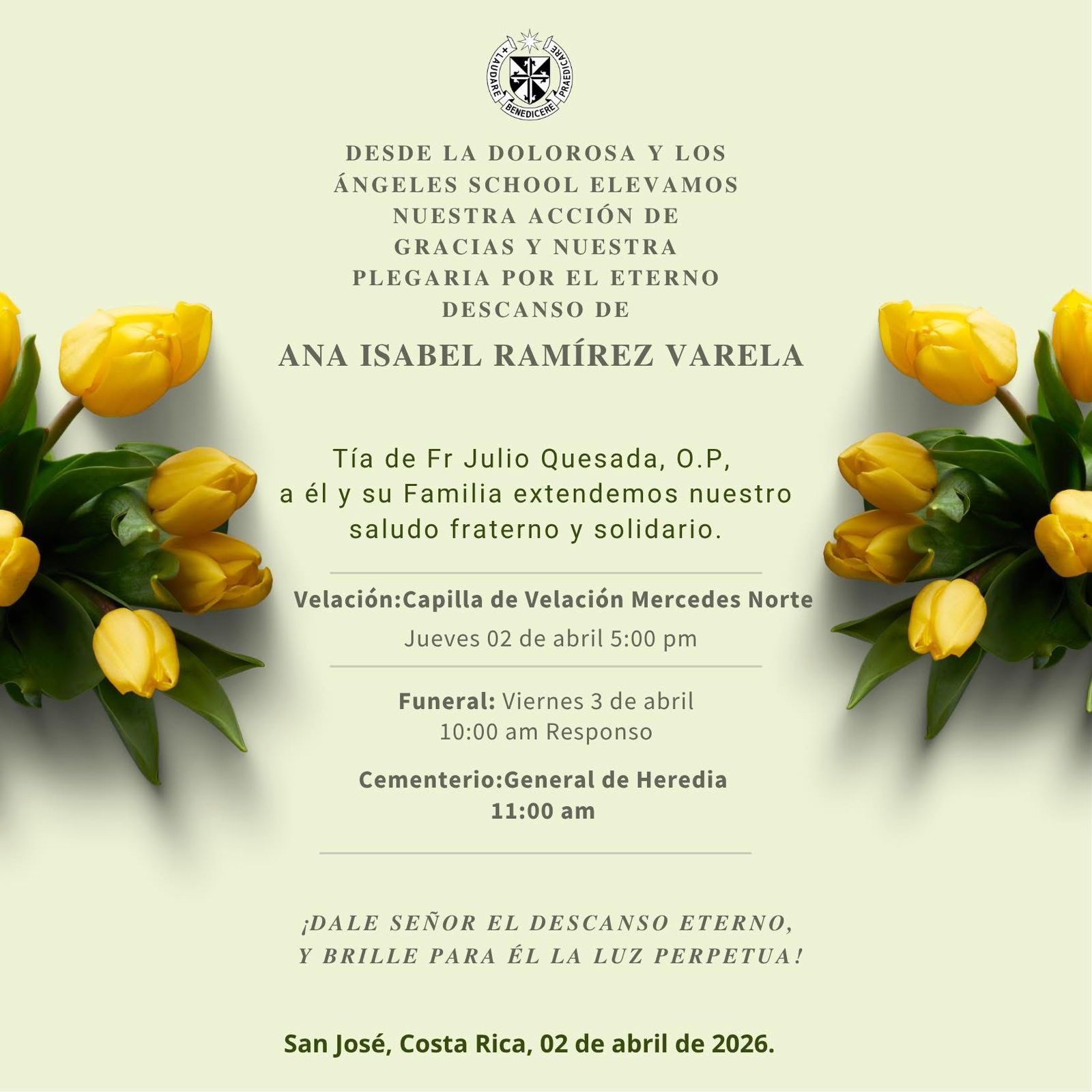 De acuerdo con la publicación compartida en redes sociales, las honras fúnebres de Ramírez se realizarán este jueves 2 de abril a las 5:00 p.m. en la Capilla de Velación Mercedes Norte. El funeral está programado para el viernes 3 de abril a las 10:00 a.m., seguido del sepelio a las 11:00 a.m. en el Cementerio General de Heredia.