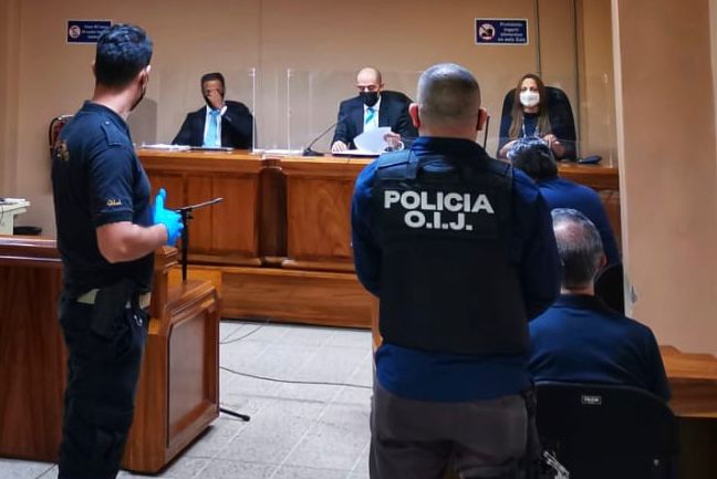 Chavarría Fonseca, a la derecha, adelante del agente del OIJ, en uno de los juicios que enfrentó. Foto de 2021. Archivo CRH