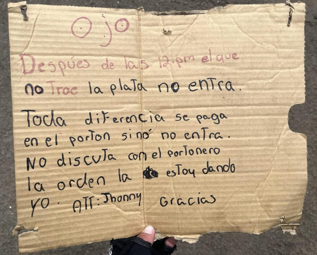 "Llama la atención por un rótulo en donde un presunto líder criminal de la zona establece condiciones para vendedores terminales de droga, quienes tienen que reportarle ganancias producto de la venta de estupefacientes que hacen, ya sea en la vía pública o en el propio búnker", apunta Solano.