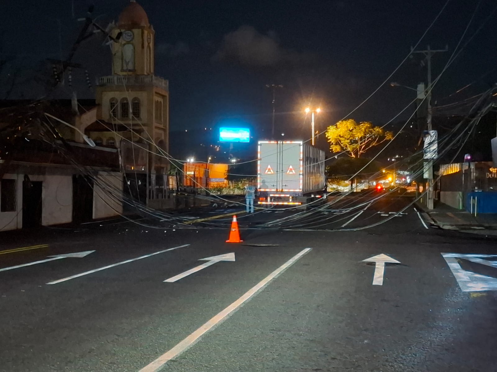 El padre Marcos Morales, de la Parroquia San Sebastián Mártir, alertó desde la tarde de este lunes sobre el riesgo que representaban varios cables y un poste que quedaron en mal estado frente al templo, horas antes de que en la madrugada se registrara la caída que generó caos y cierre vial en la zona.