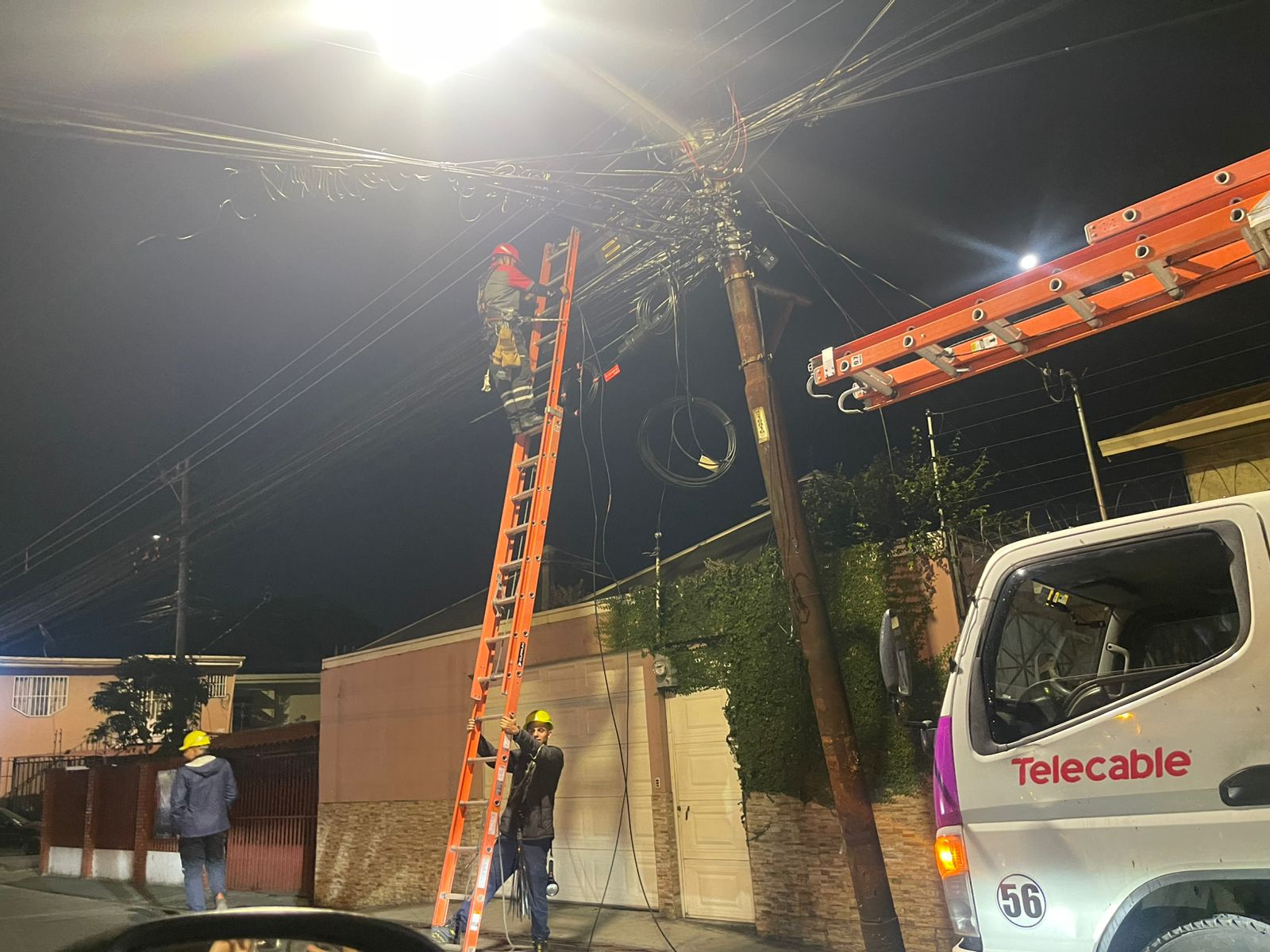 El incidente provocó que algunos cables se reventaran y que otros quedaran muy bajos sobre la vía pública. Además, un poste quedó falseado.