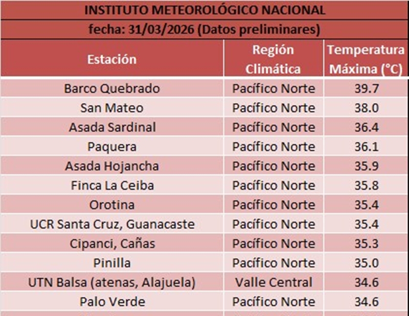 Pese a estas cambiantes condiciones que se han dado, algunos de los equipos colocados por el IMN en el país han registrado temperaturas cercanas a los 40 grados, más que todo en la provincia de Guanacaste.