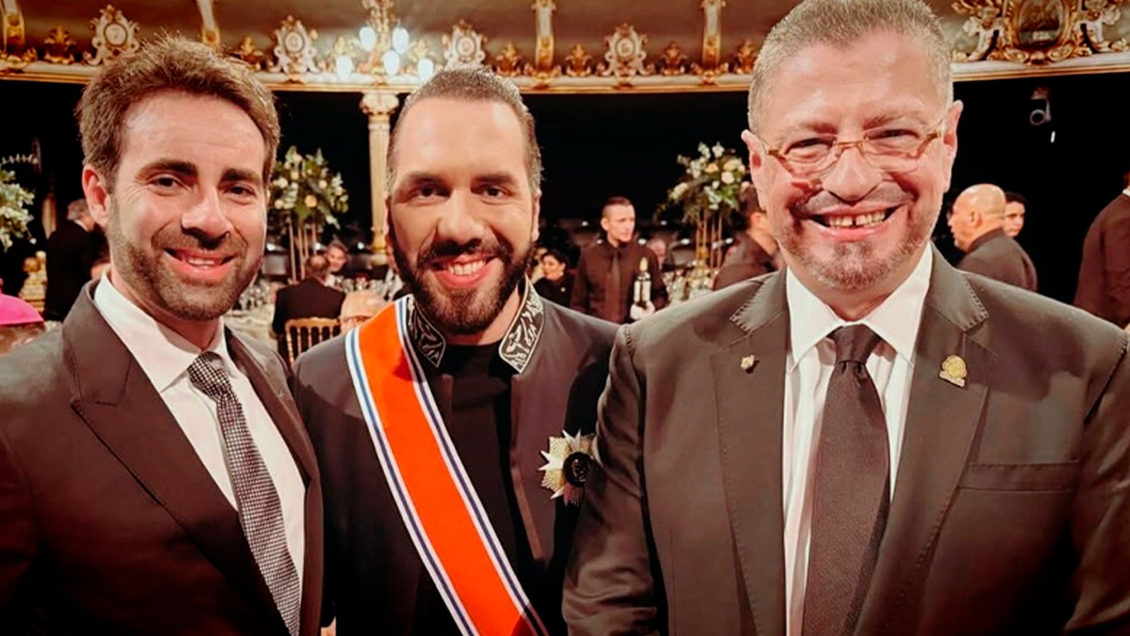 El financista Yann Turcios junto Nayib Bukele y Rodrigo Chaves