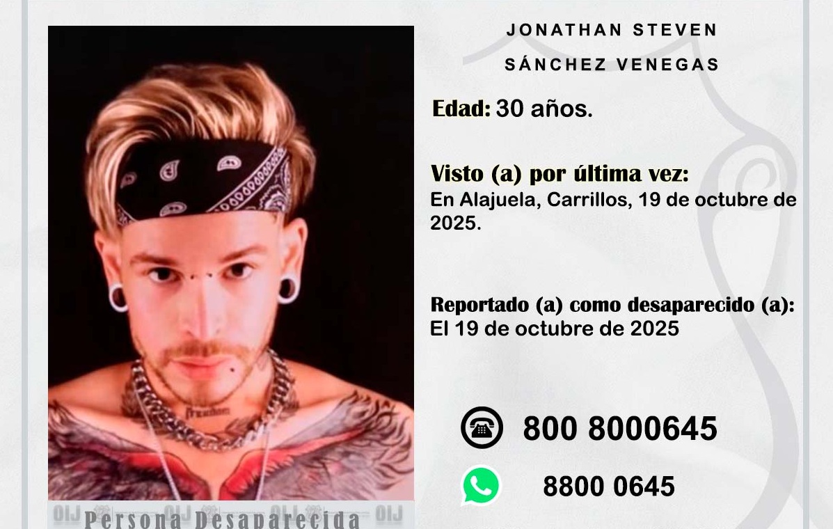 Sánchez, de 36 años, fue reportado como desaparecido desde el pasado 19 de octubre, tras ser visto por última vez en el sector de Carrillos de Alajuela