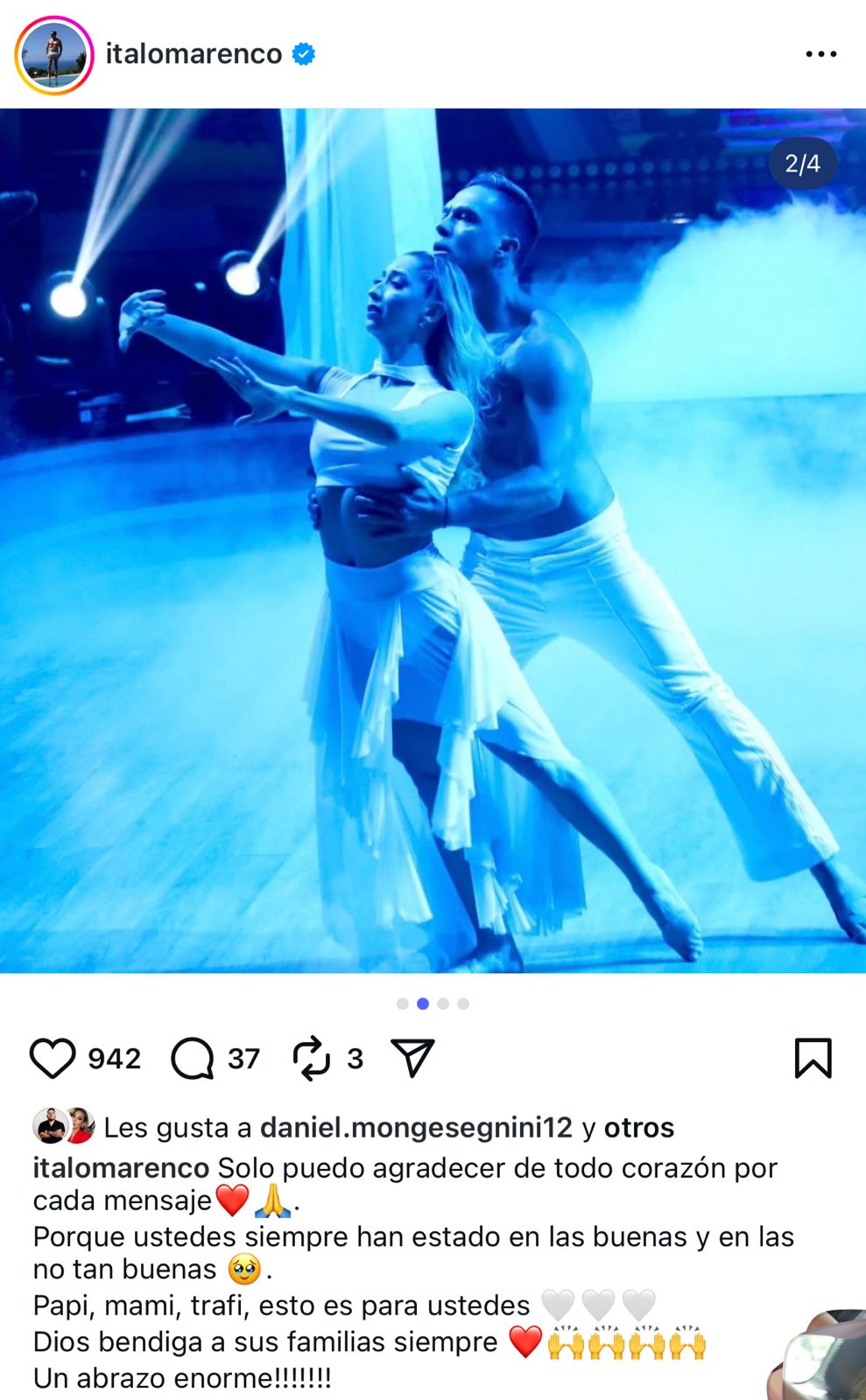 Solo puedo agradecer de todo corazón por cada mensaje, porque ustedes siempre han estado en las buenas y en las no tan buenas. Papi, mami, Trafi, esto es para ustedes. ¡Dios bendiga a sus familias siempre! Un abrazo enorme, escribió el presentador en sus redes sociales.