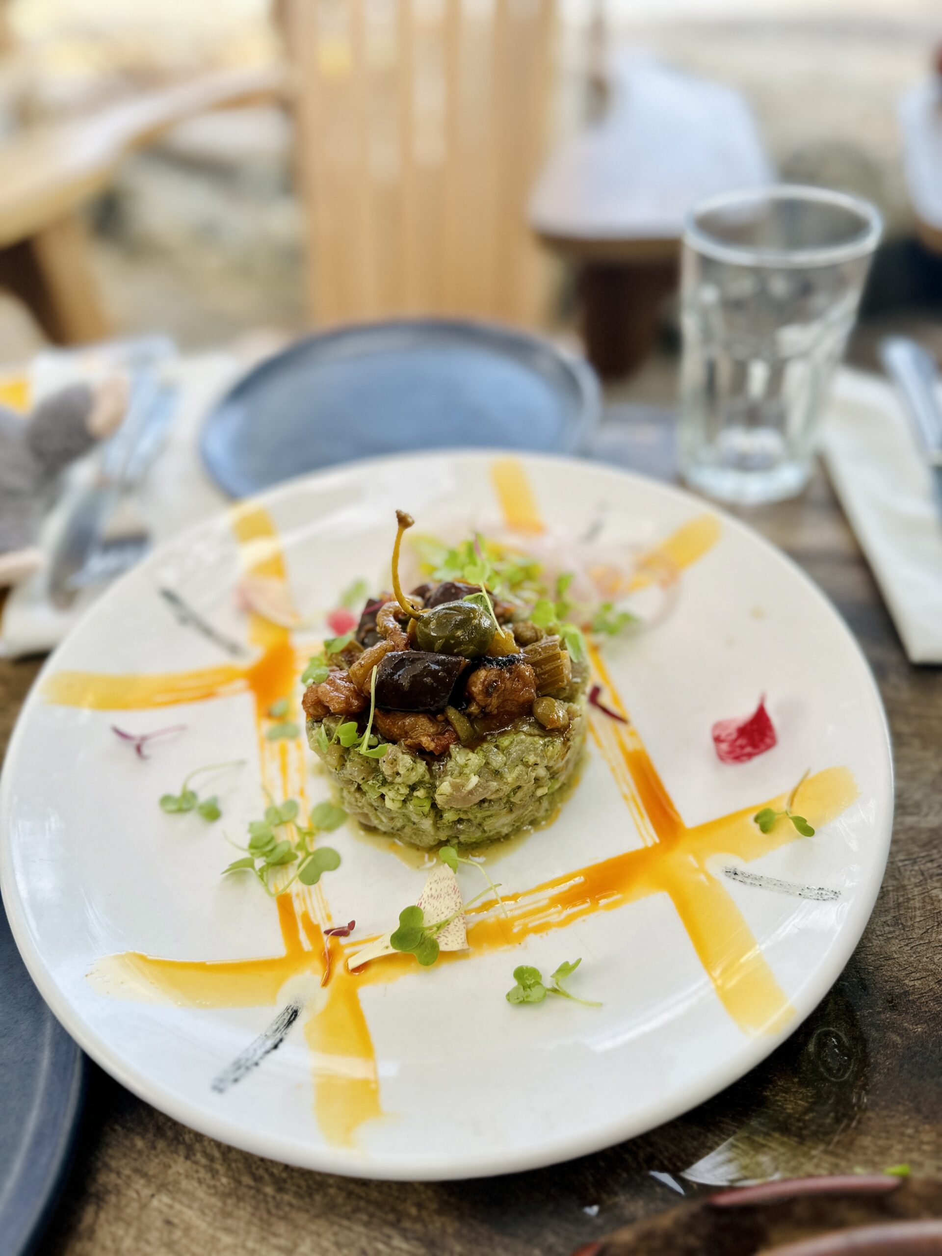 Tartar de pescado: Preparado con la pesca fresca del momento. Un plato delicado lleno de frescura, sabor y estilo de poca intervención que caracteriza a Playa de Los Artistas.