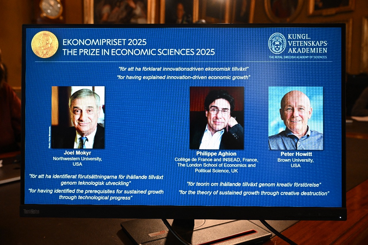 Aghion, de 69 años, y Howitt, de 79 años, compartieron a su vez la otra mitad "por la teoría del crecimiento sostenido a través de la destrucción creativa", añadió el jurado.